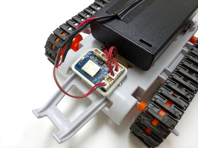 タミヤのアームクローラーにツインモーターギヤボックスを搭載し、電源とコントロールにbCoreを使っています。